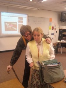 Senior Citizen Day was the hardest of all because EVERYONE did a wonderful job! Ashley S. showed off her make up skills with some crow’s feet and baggy eyes to match her curlers. Dustin H. resembled a few of our older teachers at Central.