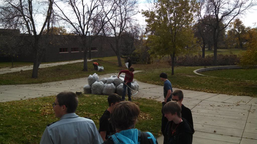 On Thursday afternoon students lent a hand to custodians attempting to clean up the grounds following the blizzard. Mr. Seales called for some assistance and in no time, an unofficial grounds crew had bagged up the largest batches of leaves and dragged into a pile the large branches that had fallen in the courtyard outside the commons. Mr. Seales happily reported that “The bigger work is done and students are asking how they can help make the courtyard look better,” a good indication of the investment students have in our school.