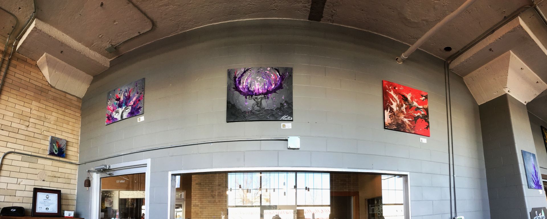 Each barista had different favorite paintings. They all agreed that they couldn’t choose just one and proceeded to narrow it down to their top three. They all liked Pullins’ “Do you ever look up at the stars?” which displays an astronaut traveling through an abstract space. Falzerano said that she really likes Pullins’ extra colorful painting, “Clash of Color.”