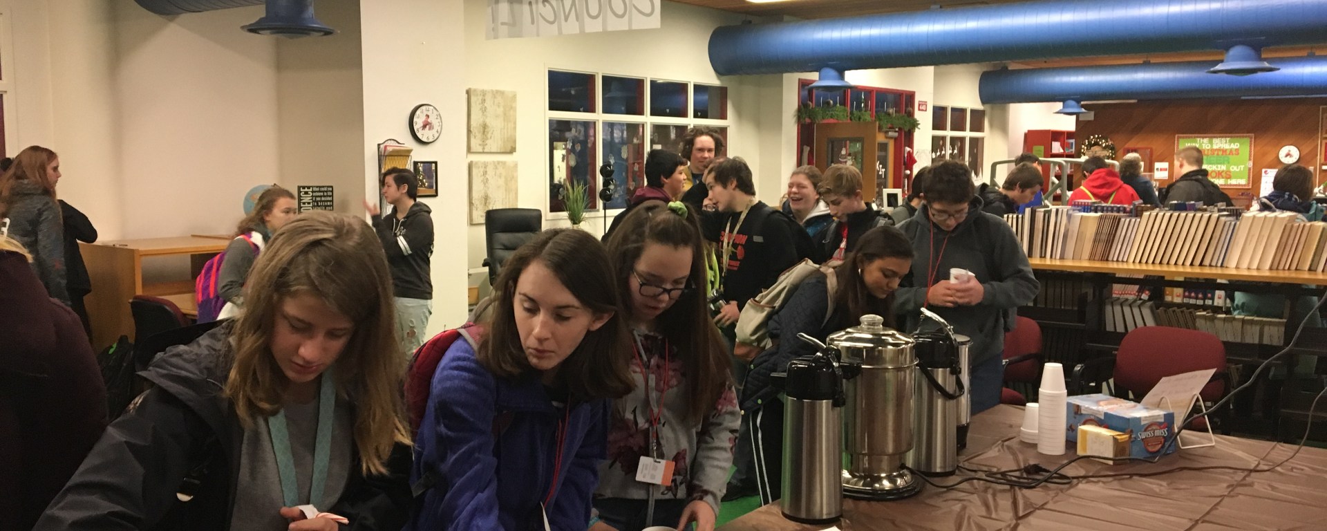 On Monday, December 10th, the library in collaboration with Student Council started a free hot chocolate bar to help spread the joy of the holiday season (they did accept donations). In the four days that it was in session they gave out about 800 cups, according to Jayne Leusink, the librarian, and Mandy Hennies, the administration secretary and student council co-advisor. With the population of the school at 2,000 kids, the 800 cups of hot chocolate is astounding. However, the administration cancelled the holiday event by the end of the week, citing students’ carelessness when it came to staying in the library or the commons and throwing away the waste. We have a different opinion.