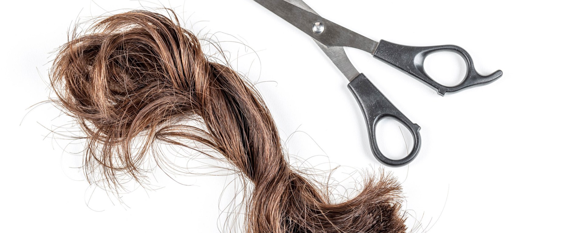 Image: A bundle of cut hair with scissors on a white background. Haircut, change concept by Marco Verch on Flickr