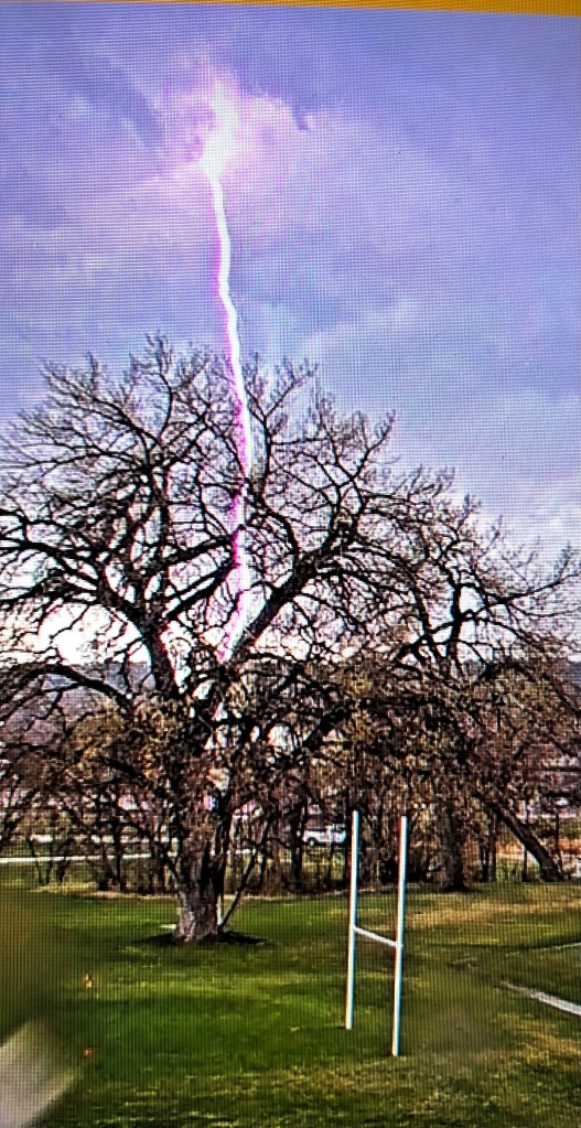 A recent thunderstorm that rumbled over a Central High School day hit a tree on the school’s grounds.