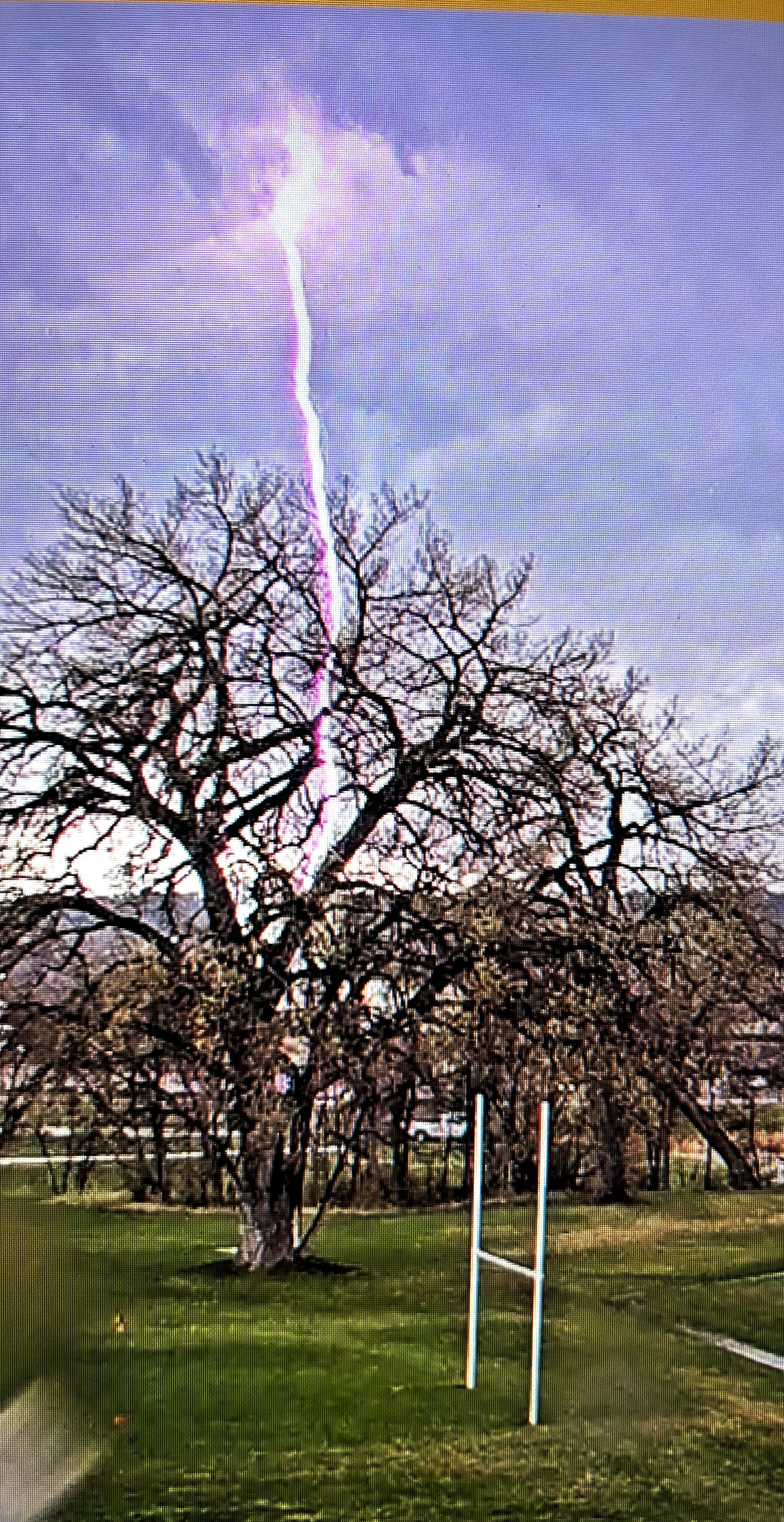 During the school day last week on April 25, one of the trees on the far side of Central’s football field was struck by lightning. It sustained no major damage and thankfully did not start a fire.